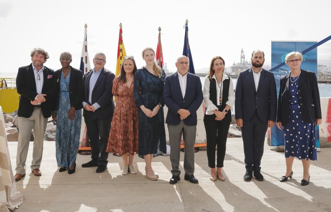 José Joaquín Hernández Brito, the CEO of PLOCAN, Kristine Bangstad Fredriksen, CEO of Ocean Oasis AS, Sebastian Feimblatt, CEO of Ocean Oasis Canarias, S.L, Antonio Morales Méndez, the President of the Council of Gran Canaria, and Rosana Melián Domínguez, Director of the General Directorate of Energy, Government of the Canary Islands.